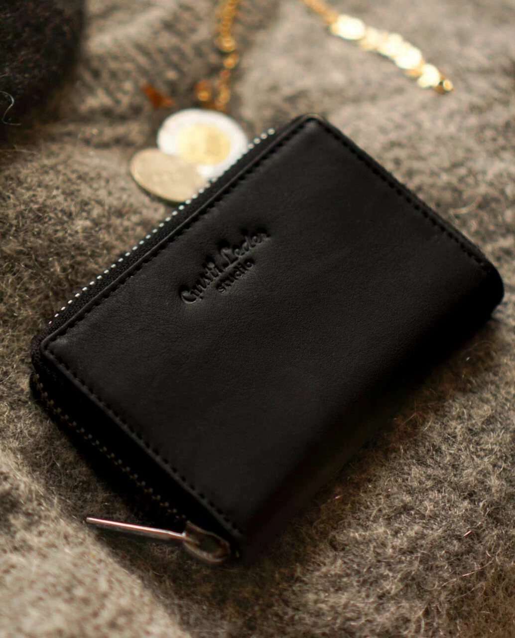 Abel Kortholder Kortetui Pung Pengepung Lille Sort Læder