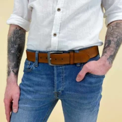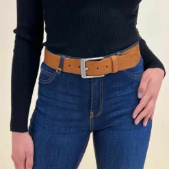Bente Bælte Læderbælte Bredt Mænd Kvinder Unisex Sølvfarvet Spænde Accessoires Brun Læder