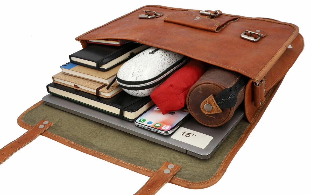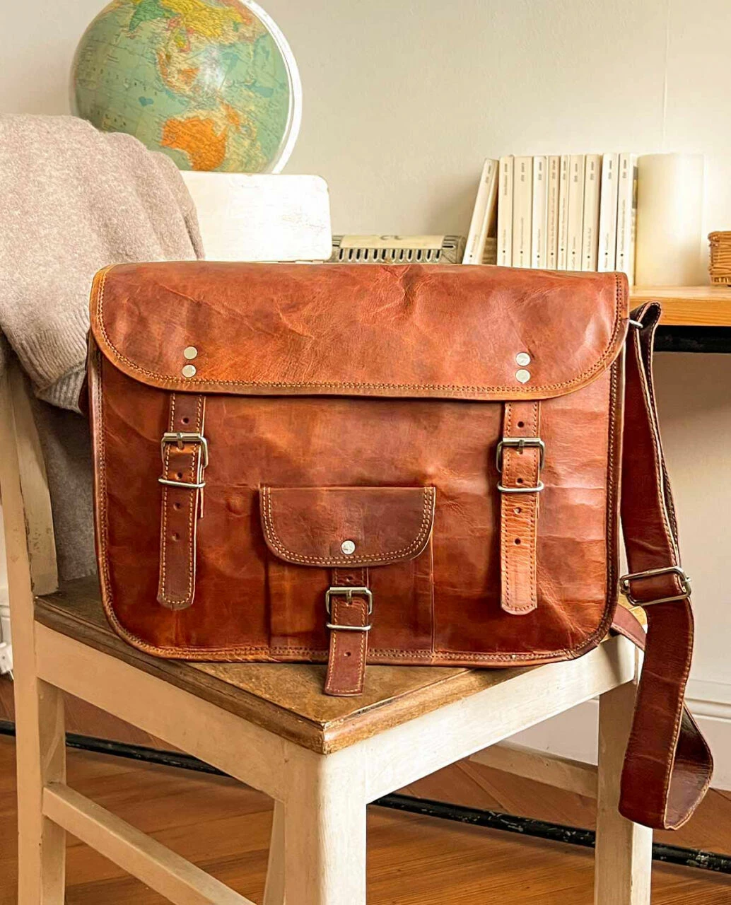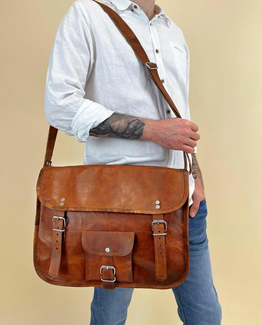Alex 15″ Skuldertaske Lædertaske Arbejdstaske Herre Brun Læder