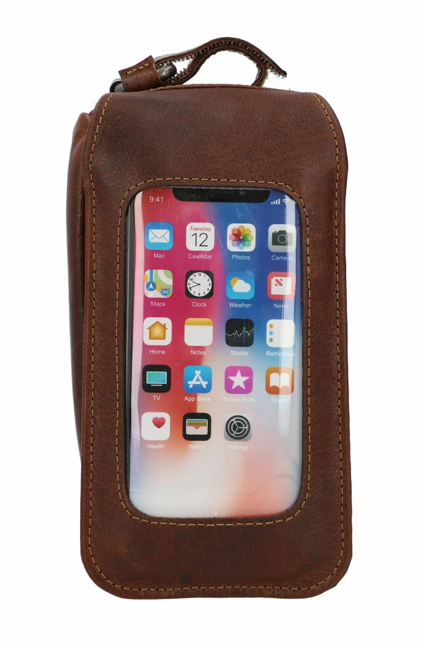Charly G. Cykeltaske Cykelstyrtaske Steltaske Rattetaske Ratstaske Stangtaske Cykeltaske Cykel Mobilholder Lædertaske Cykeltilbehør Brun Læder