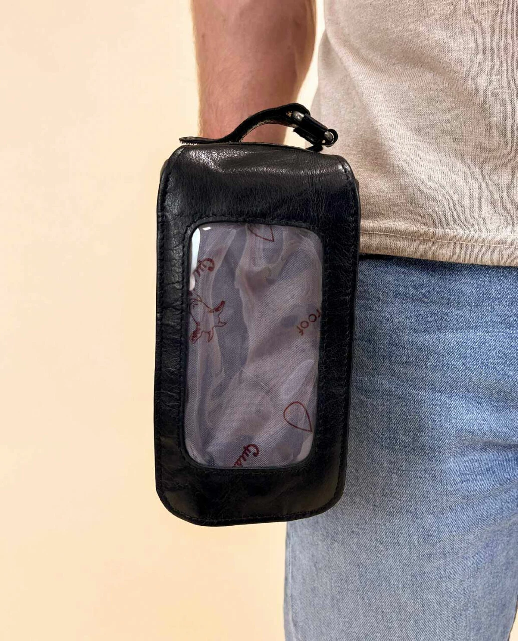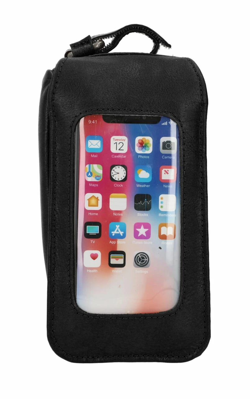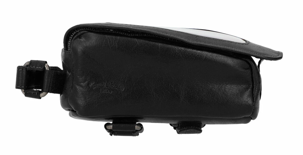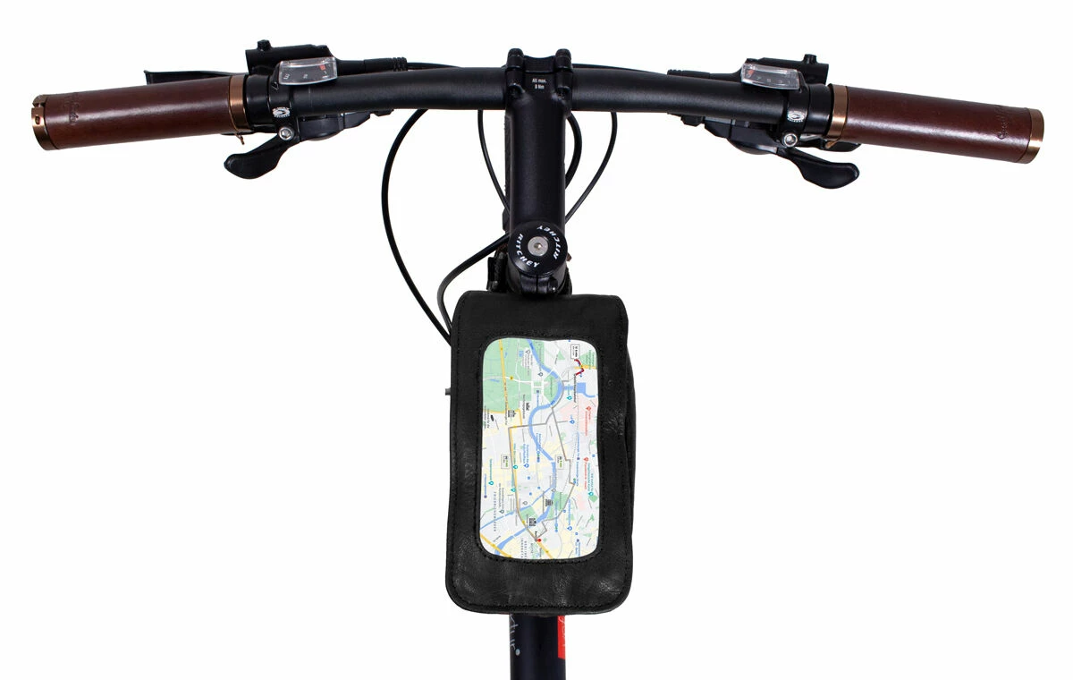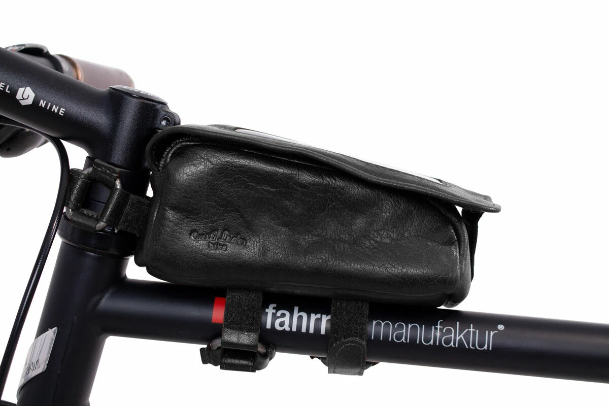 Charly G. Cykeltaske Cykelstyrtaske Steltaske Rattetaske Ratstaske Stangtaske Cykeltaske Cykel Mobilholder Lædertaske Cykeltilbehør Sort Læder