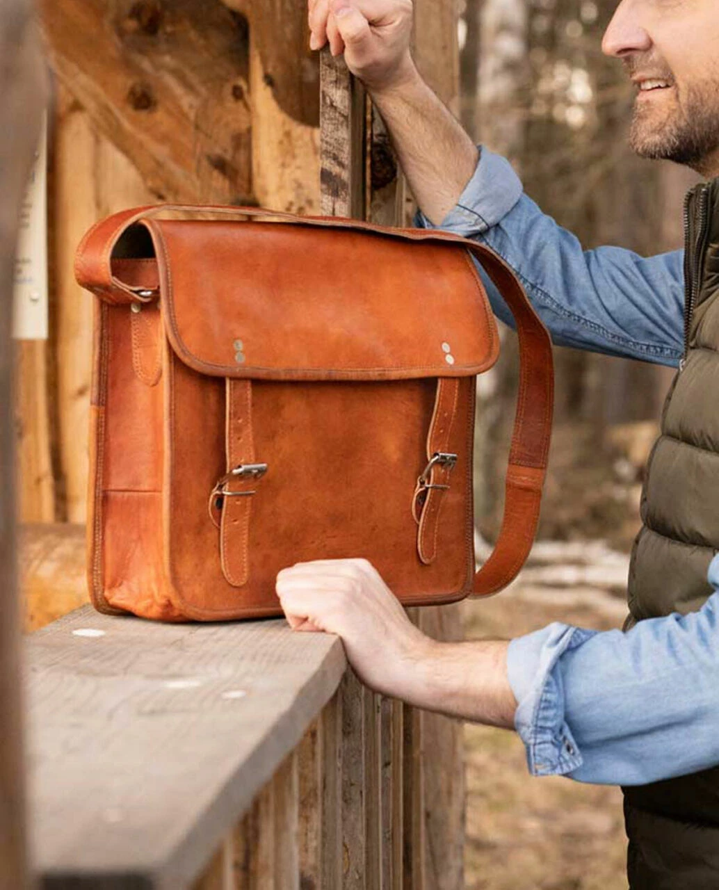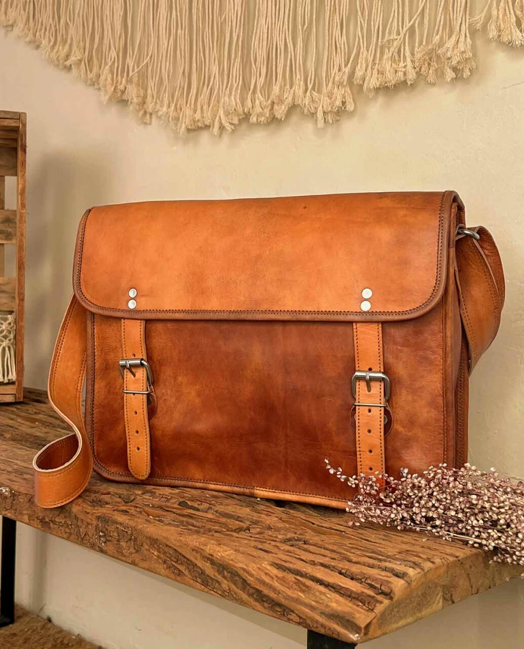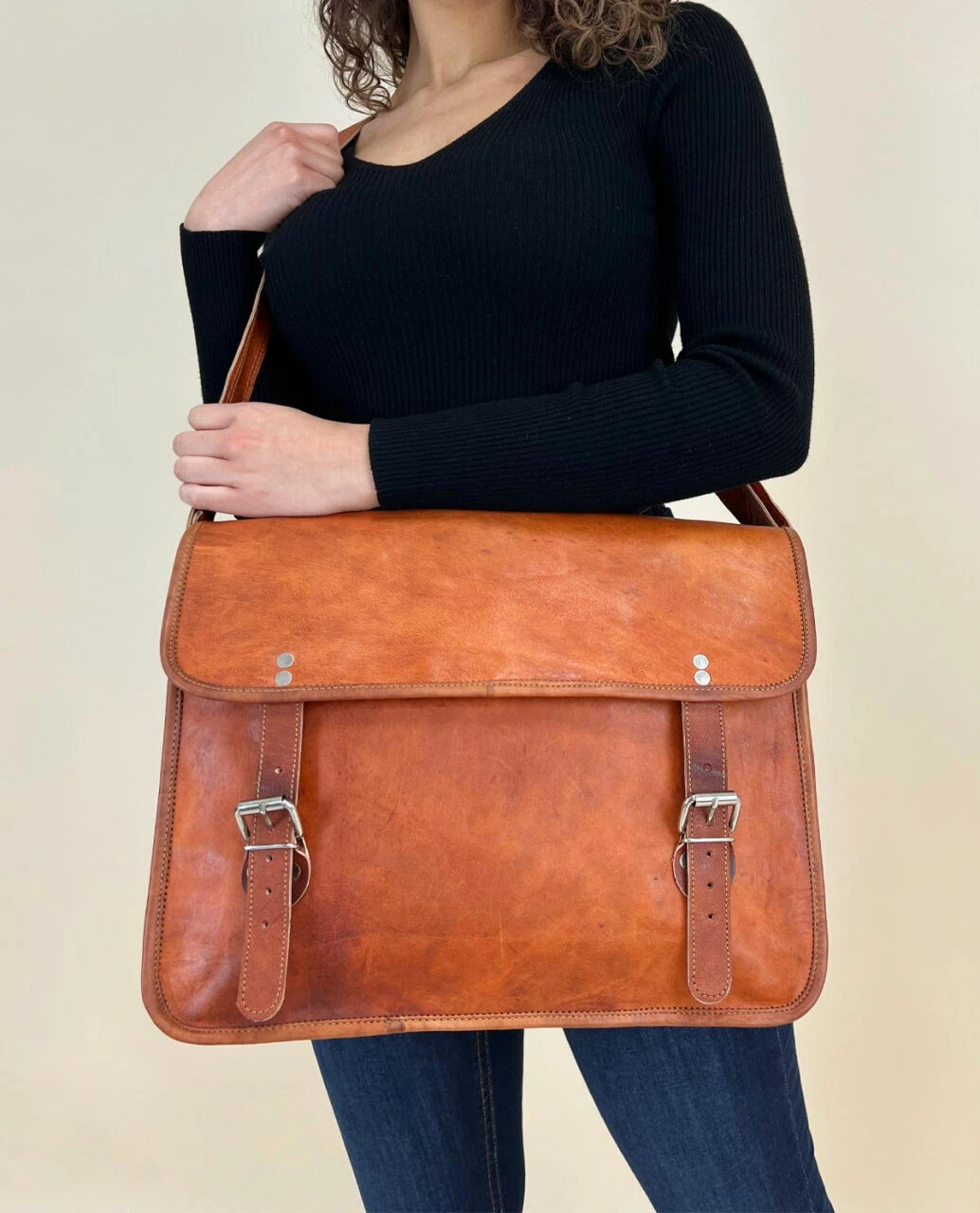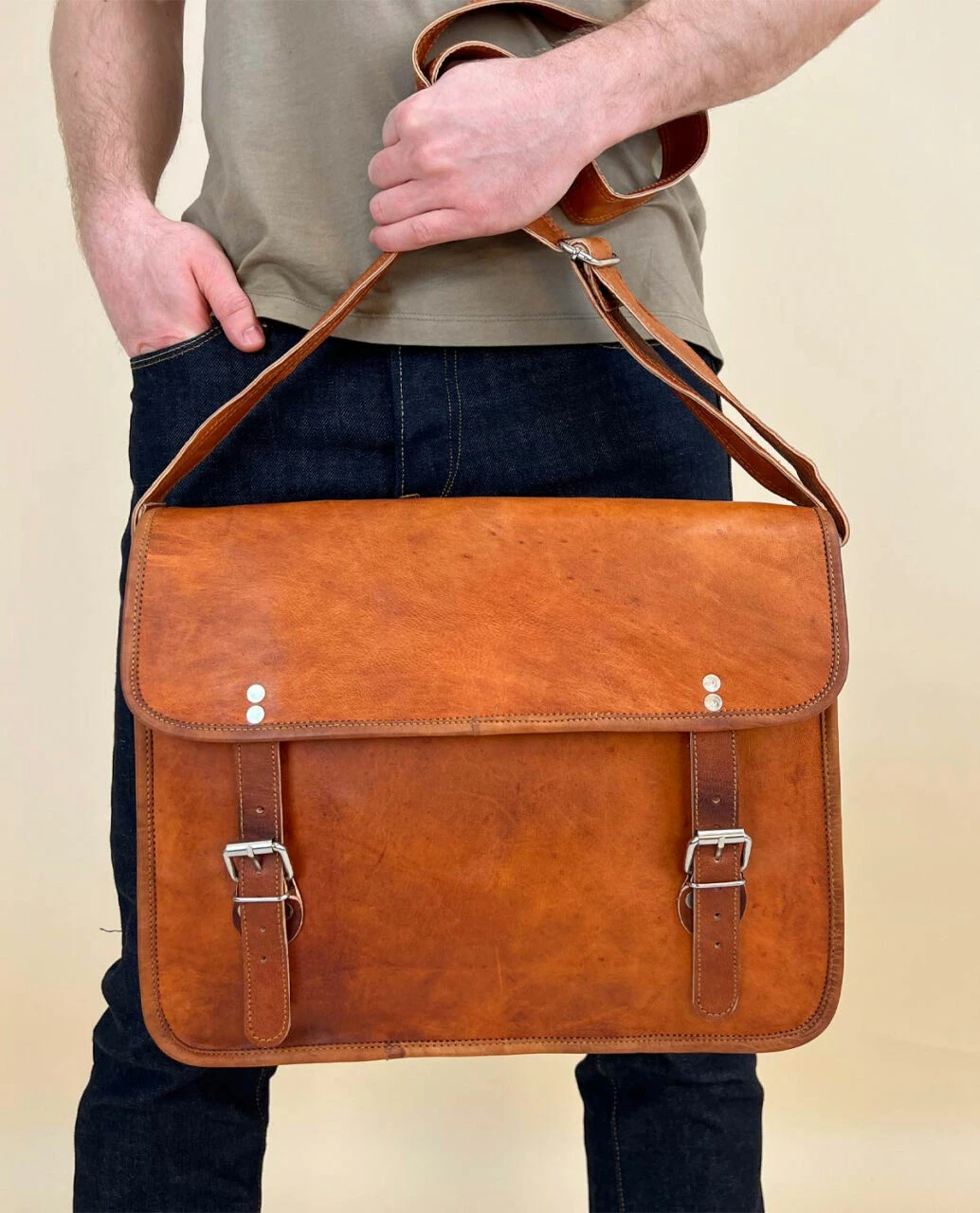 John 15″ Skuldertaske Lædertaske Håndtaske Taske Brun Læder