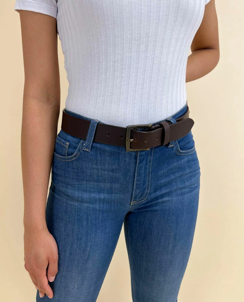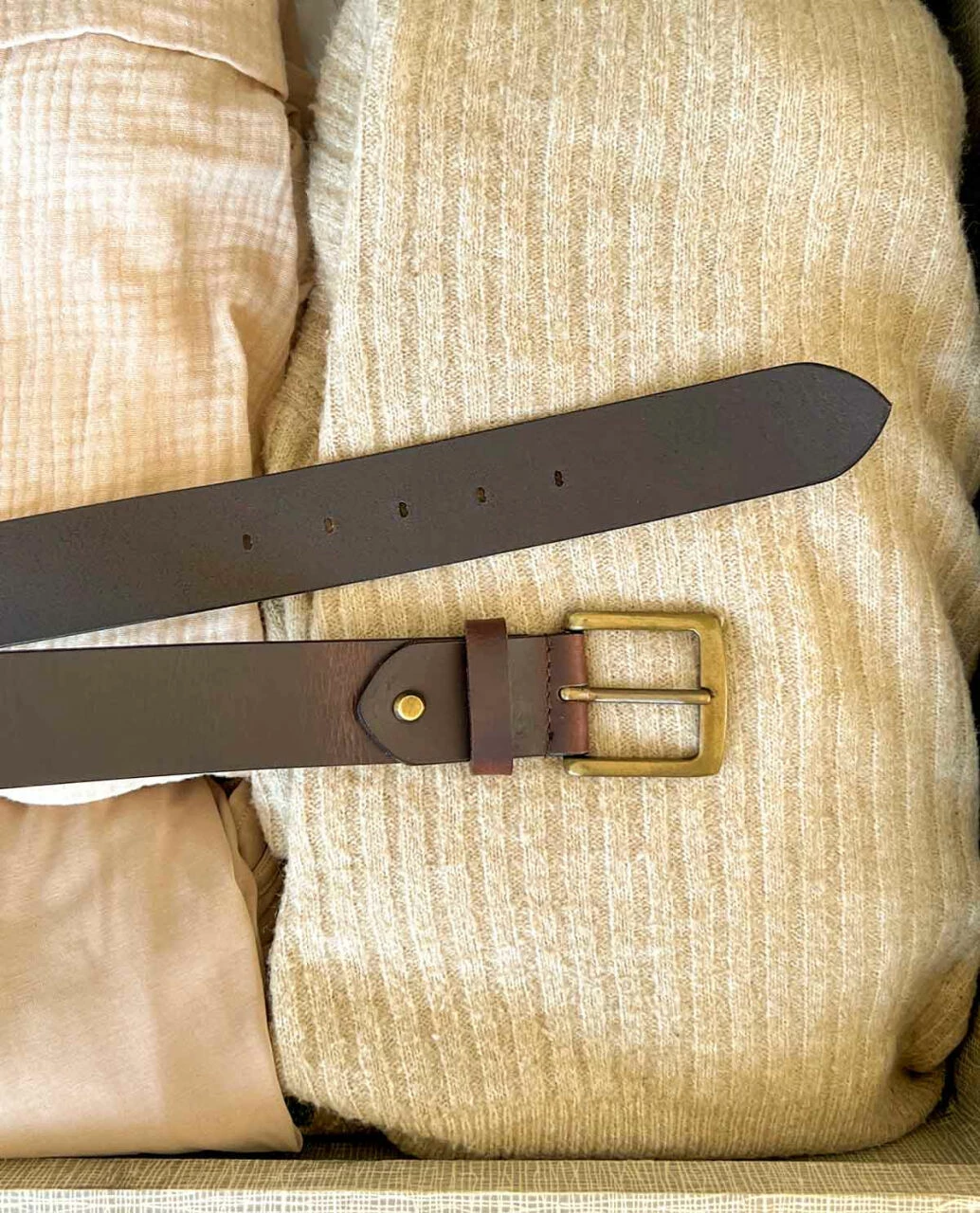 Jori Læderbælte Bælte Guldfarvet Spænde Dame Herre Brun Læder