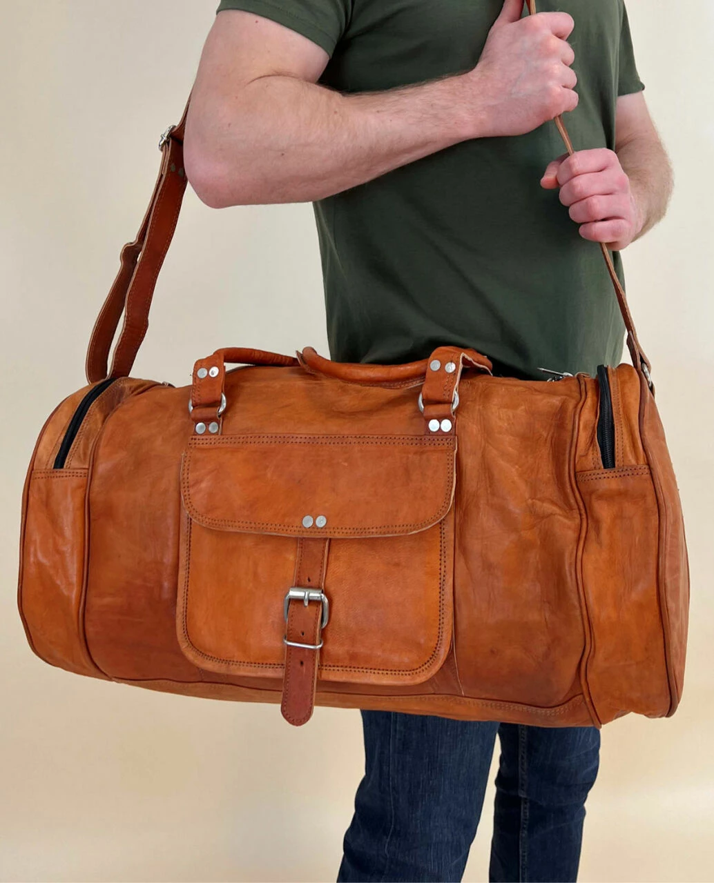 Michael Rejsetaske Lædertaske Sportstaske Håndbagage Weekendtaske Vintage Brun Læder