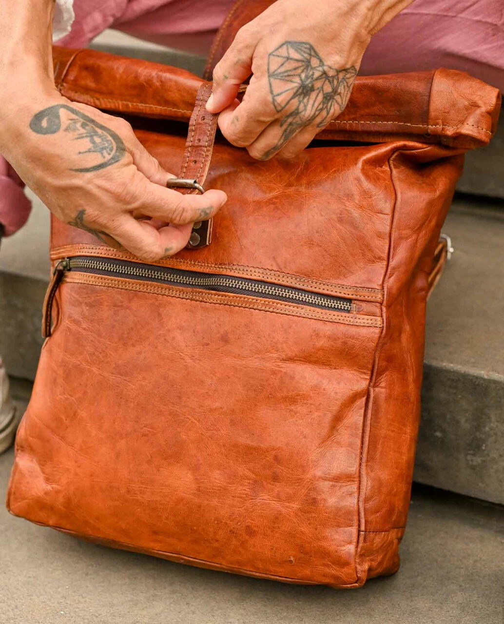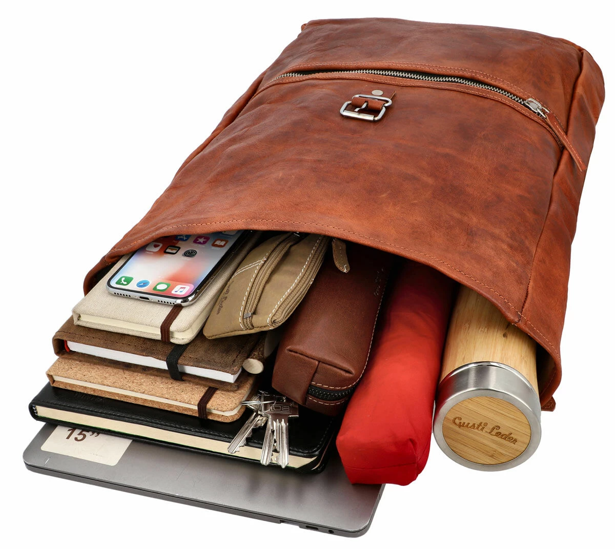 Milo Rygsæk Computertaske Læderrygsæk Dame Herre Brun Læder 17L