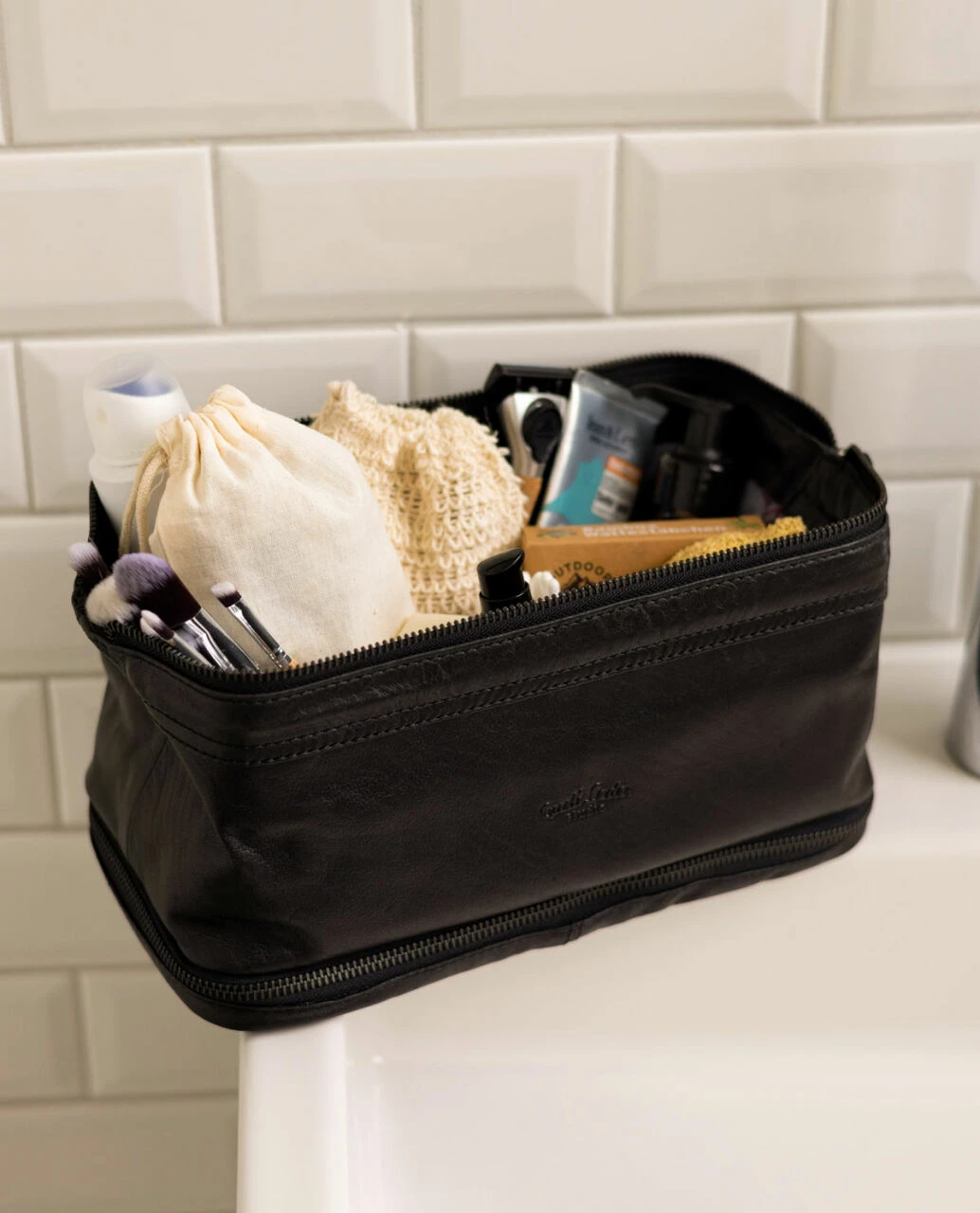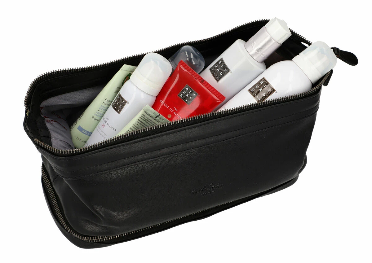 Quinn Toilettaske Make-up-pung Vandafvisende Inderfoer Sort Læder