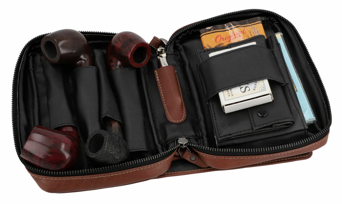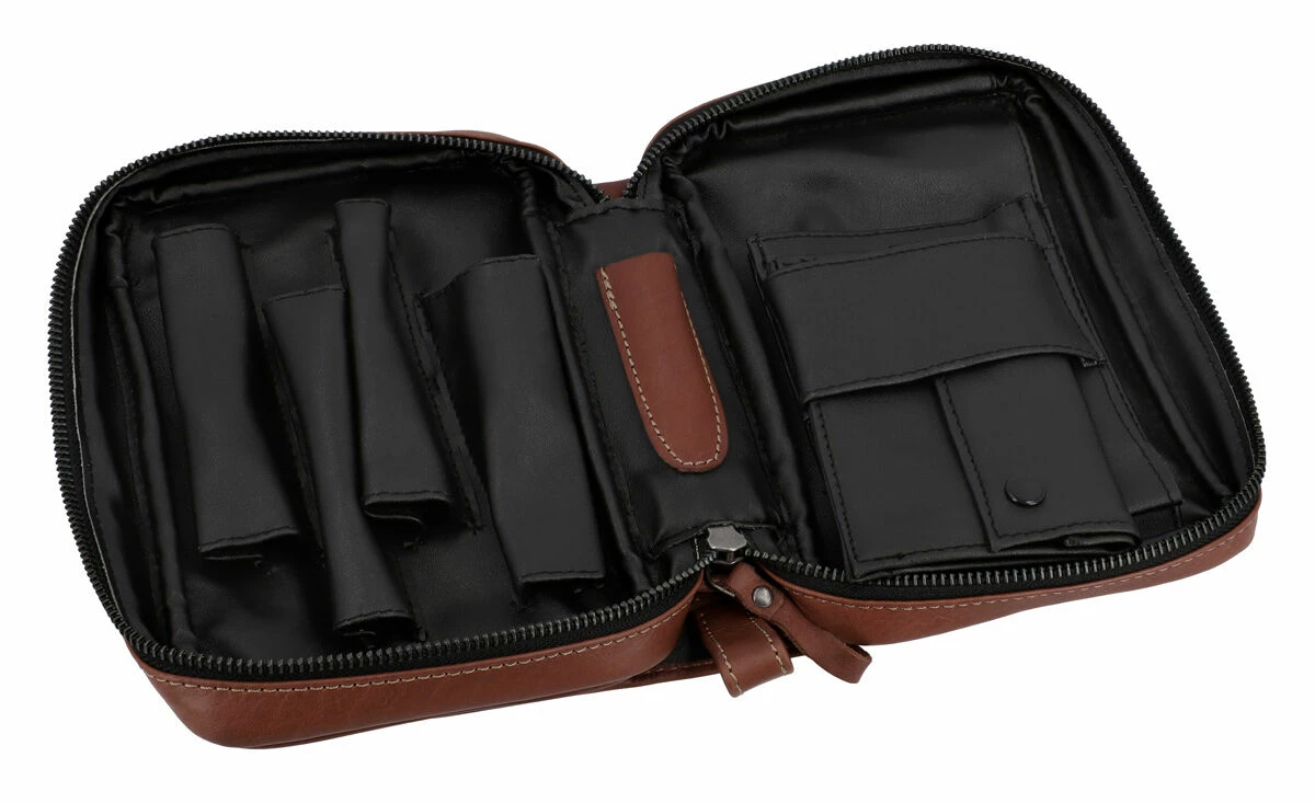 Rupert Pibetaske Til 4 Piber Ekstra Tobaksrum Indvendigt Stof Lavet Af Naturgummi Brun Læder