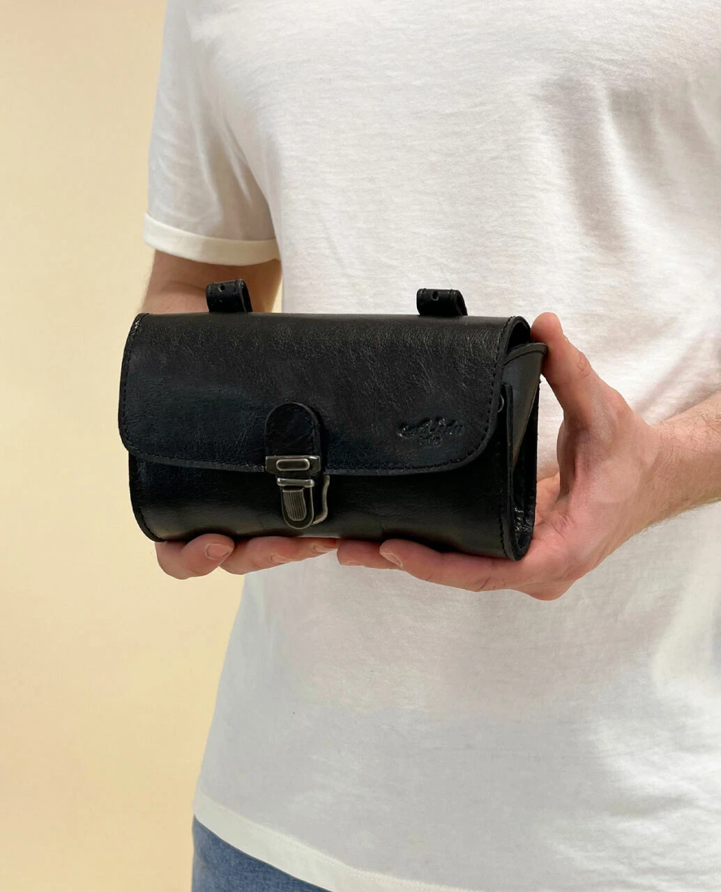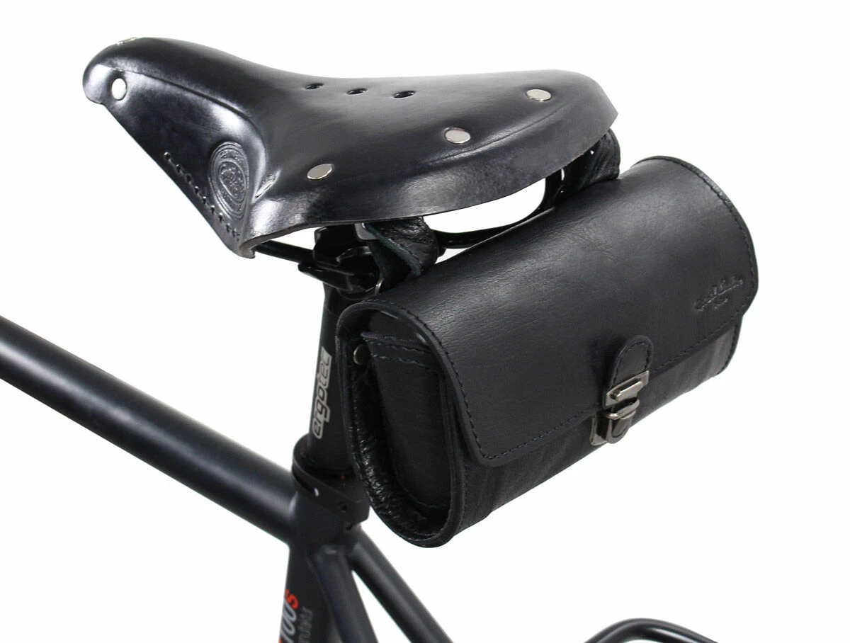 Wolfgang L. Sadeltaske Cykeltaske Styrtaske Siddetaske Sadel Taske Cykelkurv Cykel Cykelstyrstaske Lappegrejstaske Retro Sort Læder